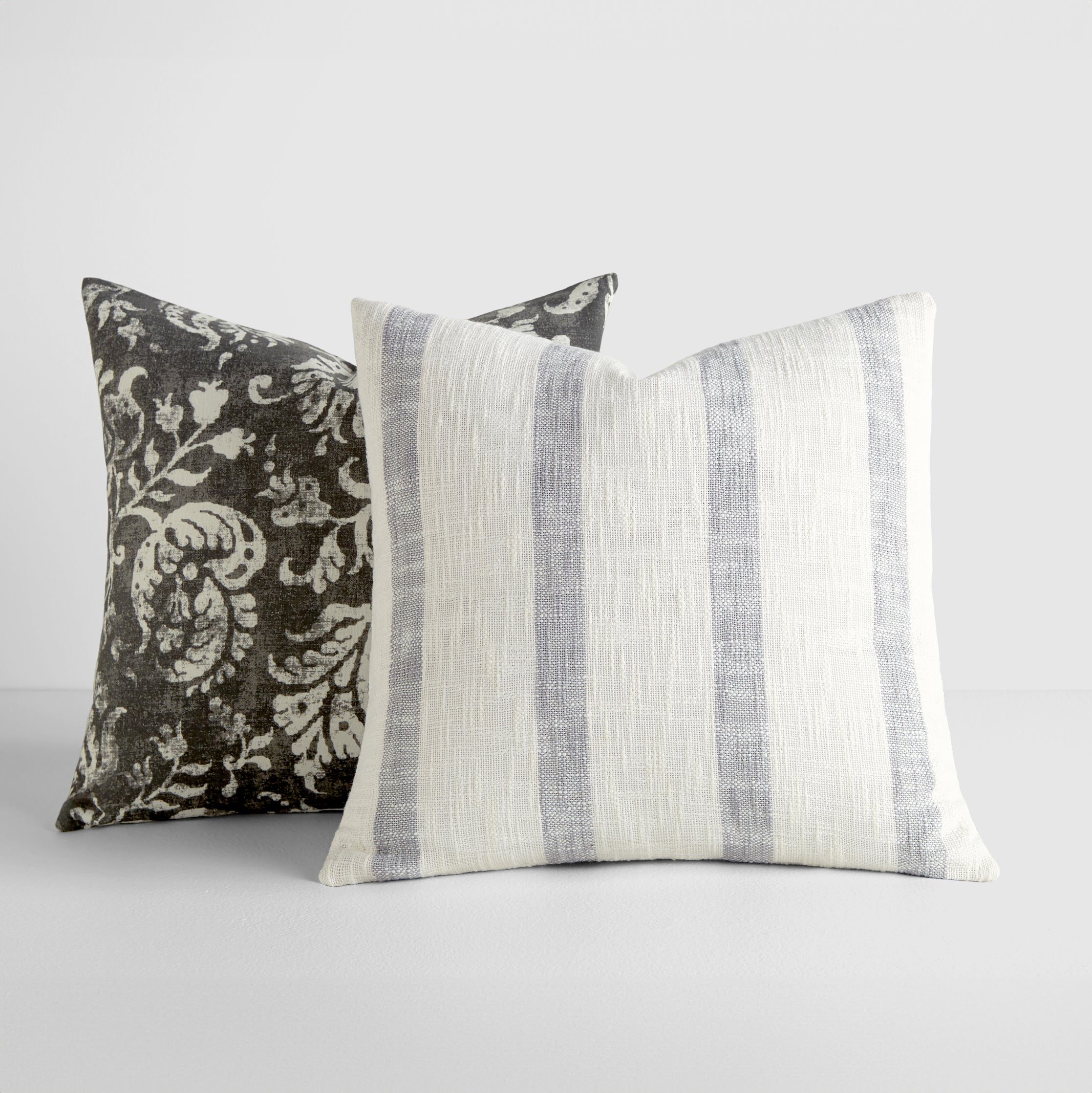 2-Pack Yarn-Dyed Awning Stripe / Distressed Floral Décor Throw Pillows